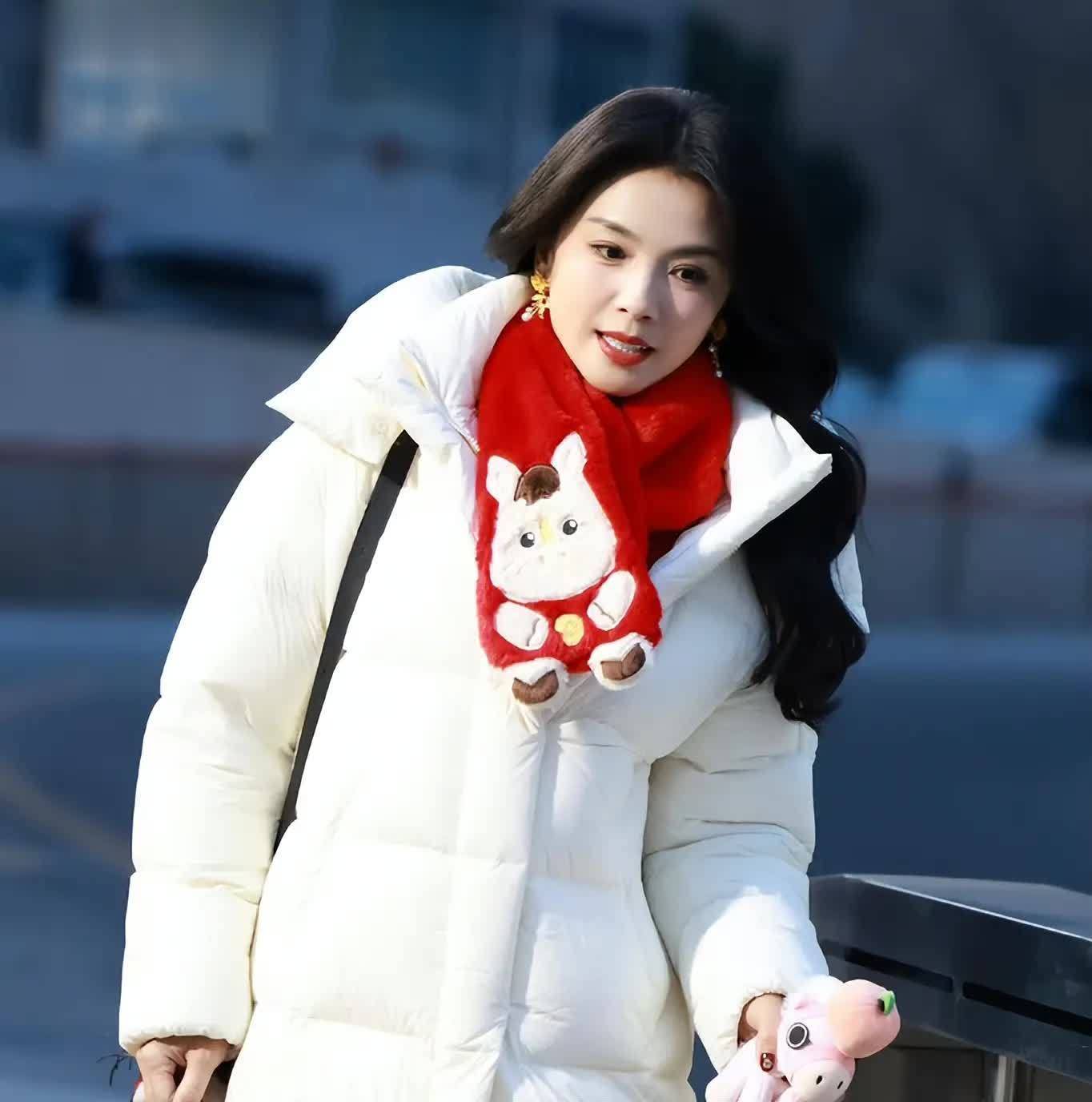1月份刚过一半,刘涛春晚路透曝光,一身白色羽绒服搭配印有小牛图案的红围巾。