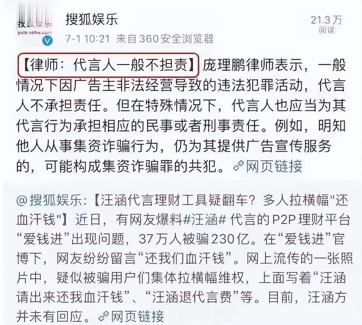 没多久,郭晶晶、刘涛被推向了舆论风口,甚至有人说“拿了上千万代言费,就该负全责”。
