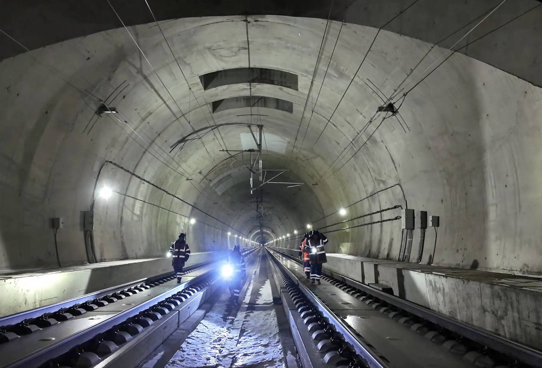 哈尔滨工务段高铁路桥车间职工们在王凤西山隧道内巡检。新华社记者 王松 摄2月18日0时30分,班组成员进入隧道,这里仍被寒气牢牢裹住。隧道内无处避寒,只能靠走动抵抗寒冷,工人们每次作业最长要4小时。