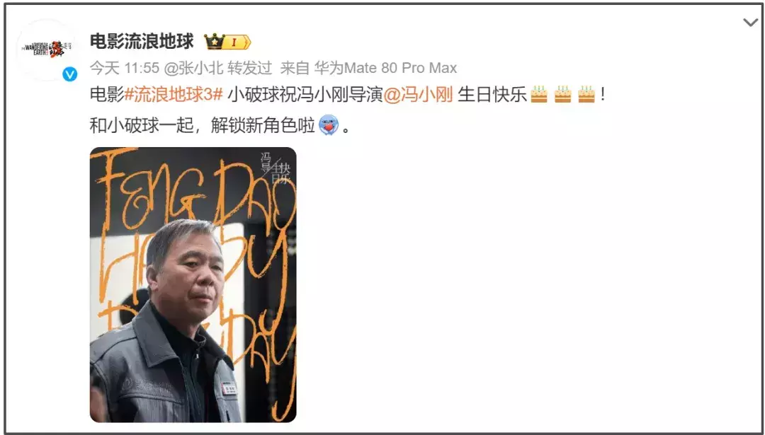 在冯小刚生日这一天,电影《流浪地球》官博有了新动静,官宣了冯小刚加入《流浪地球3》的消息。在祝冯小刚生日快乐的同时,博文也透露冯小刚的加入是解锁新角色。剧照中,冯小刚参演的角色名为“周栋亮”,身份大概是UEG组织内的工作人员或领导层成员。